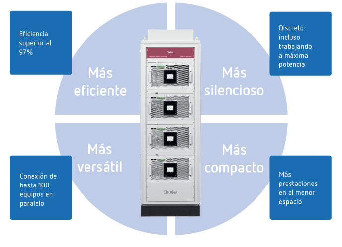 Los Generadores estáticos de reactiva, revolucionan la compensación de energía reactiva mediante un novedoso diseño, con el objetivo de garantizar el montaje, instalación y puesta en servicio más rápido, eficaz y sencillo que ofrece el mercado. Asegurando, ademas las más altas prestaciones gracias a la calidad de todos sus componentes europeos, una producción y ensamblaje en las instalaciones de Circutor.