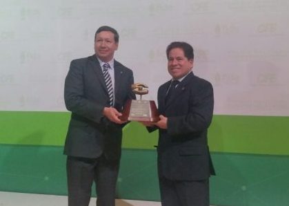 EL ING. ALEJANDRO ADAME Y EL ING. ALFREDO AGUILAR CON EL PREMIO